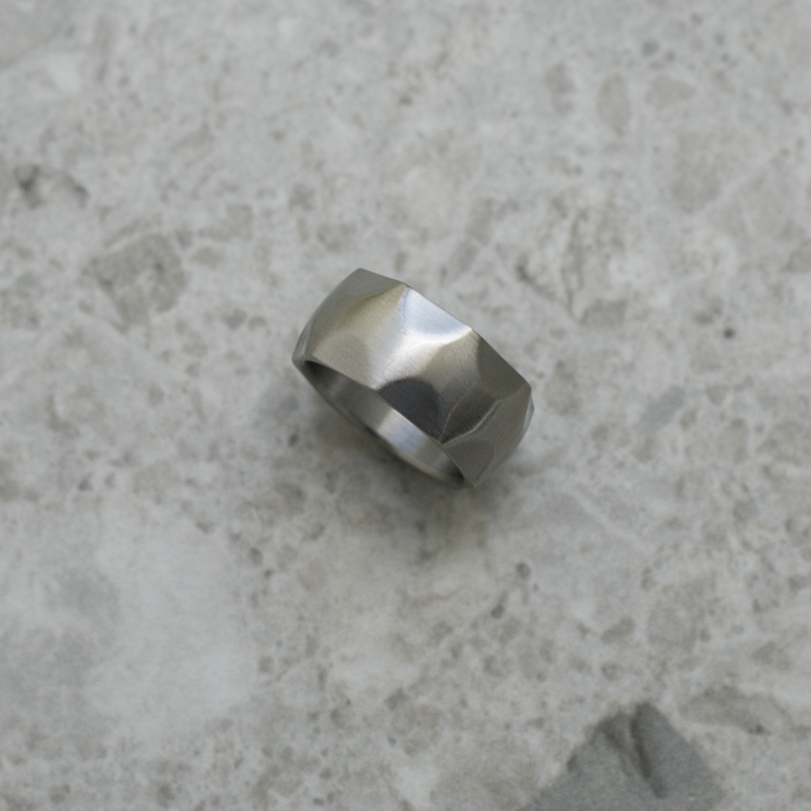 Ring i matt stål med fasetter från Created by Designtorget. Den här ringen kombinerar enkelhet med tydlig formkänsla. De fasetterade detaljerna ger ett unikt uttryck, medan det matta stålet skapar en tidlös och modern look som passar lika bra till vardag som till fest.