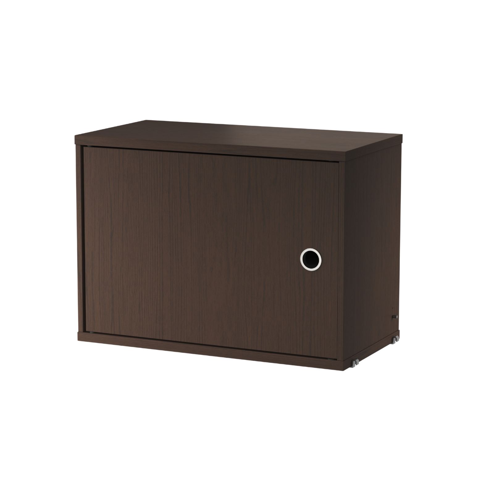 Skåp med dörr finns i en bredd, 58 cm, samt ett djup, 30 cm. Skåpet passar med tråd- och plexgavlar från String System förutsatt att gavlarna har 30 cm djup. Det är fint att bryta av din hylla med skåp som dessutom ger dig extra förvaring samt möjlighet att placera saker ovanpå. Skåpet består av ett innerhyllplan som kan justeras efter behov. Dörren är anpassningsbar och går att montera både på vänster och höger sida. Skåpet mäter invändigt: bredd 54 x djup 26 x höjd 38 cm. Levereras omonterat.