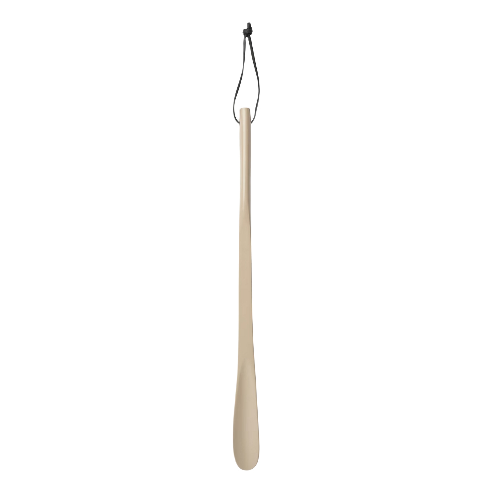 Skohorn i återvunnen aluminium med läderband för upphängning.