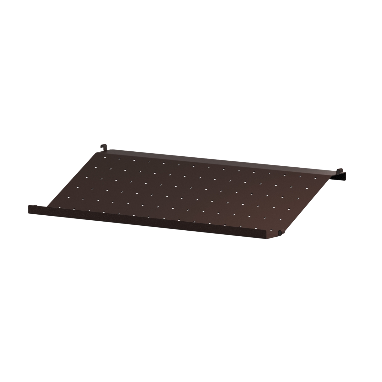 String skohylla i strukturlackad perforerad metall, perfekt till hallen. Formgiven av Anna von Schewen & Björn Dahlström för String Furniture.