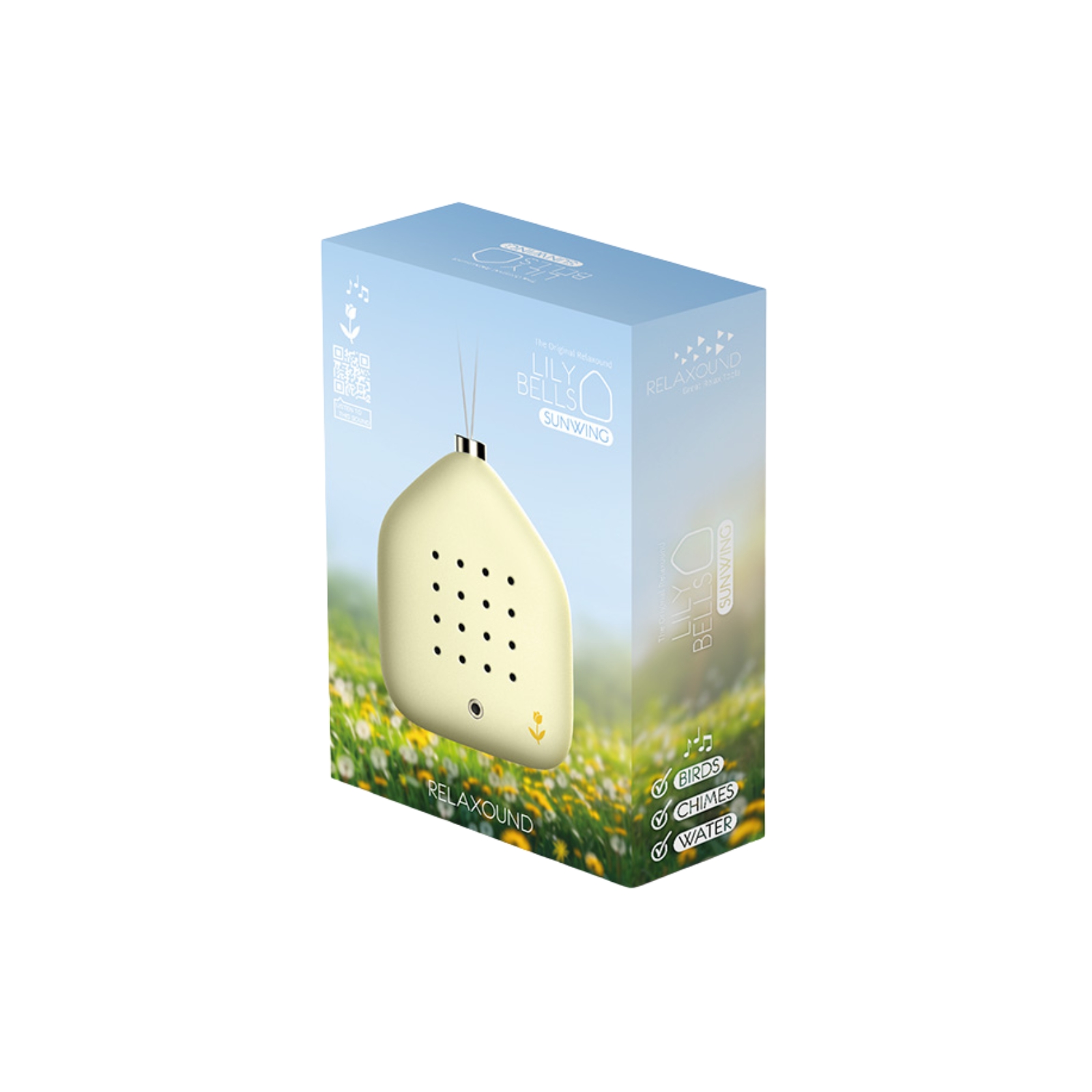 Äntligen kommer bästsäljaren Kvitter i en mindre variant! Lily Bells från Relaxound är små ljudobjekt som fyller ditt hem med naturens vackraste toner. Den ljusgula dosan kombinerar koltrastens varma sång med mjuka klockspel och lätta vattenljud. Korta, naturliga sekvenser aktiveras av rörelse och skapar en lugn och harmonisk atmosfär.