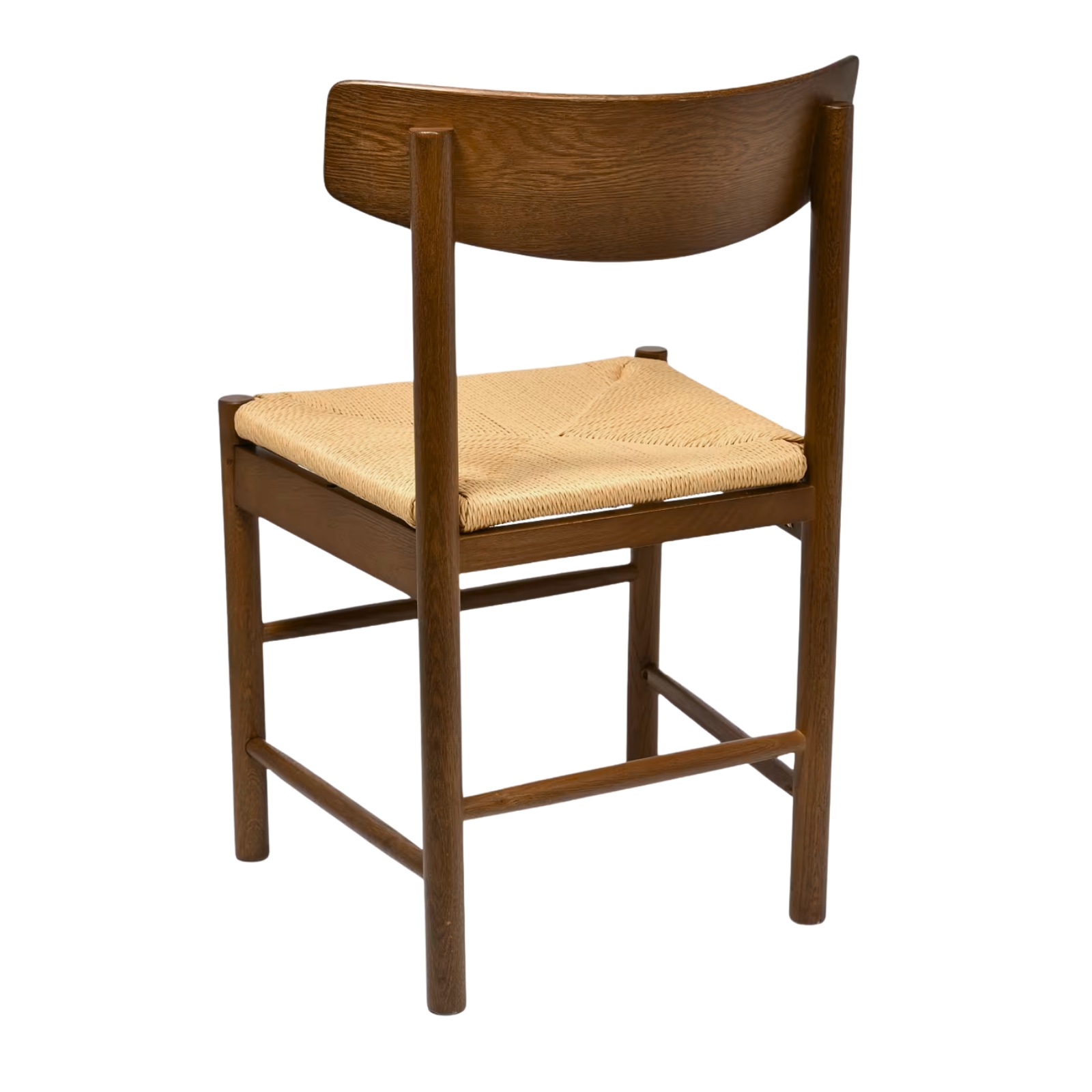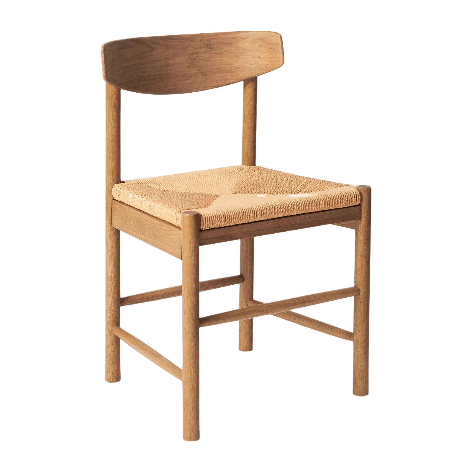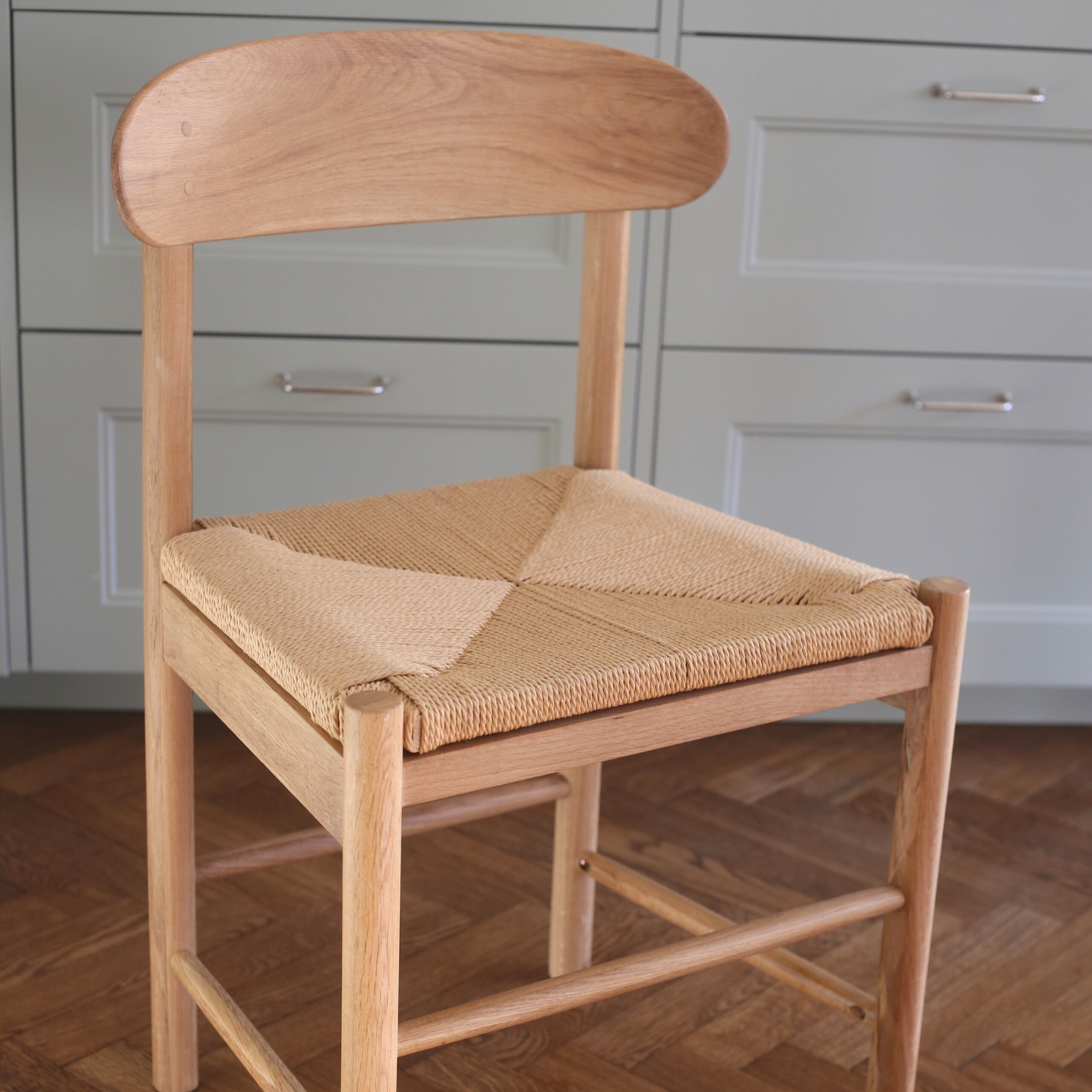ALMA har ett välvt ryggstöd och bekväm flätad omlottsits av tvinnat papperssnöre.• Matstol i ekträ