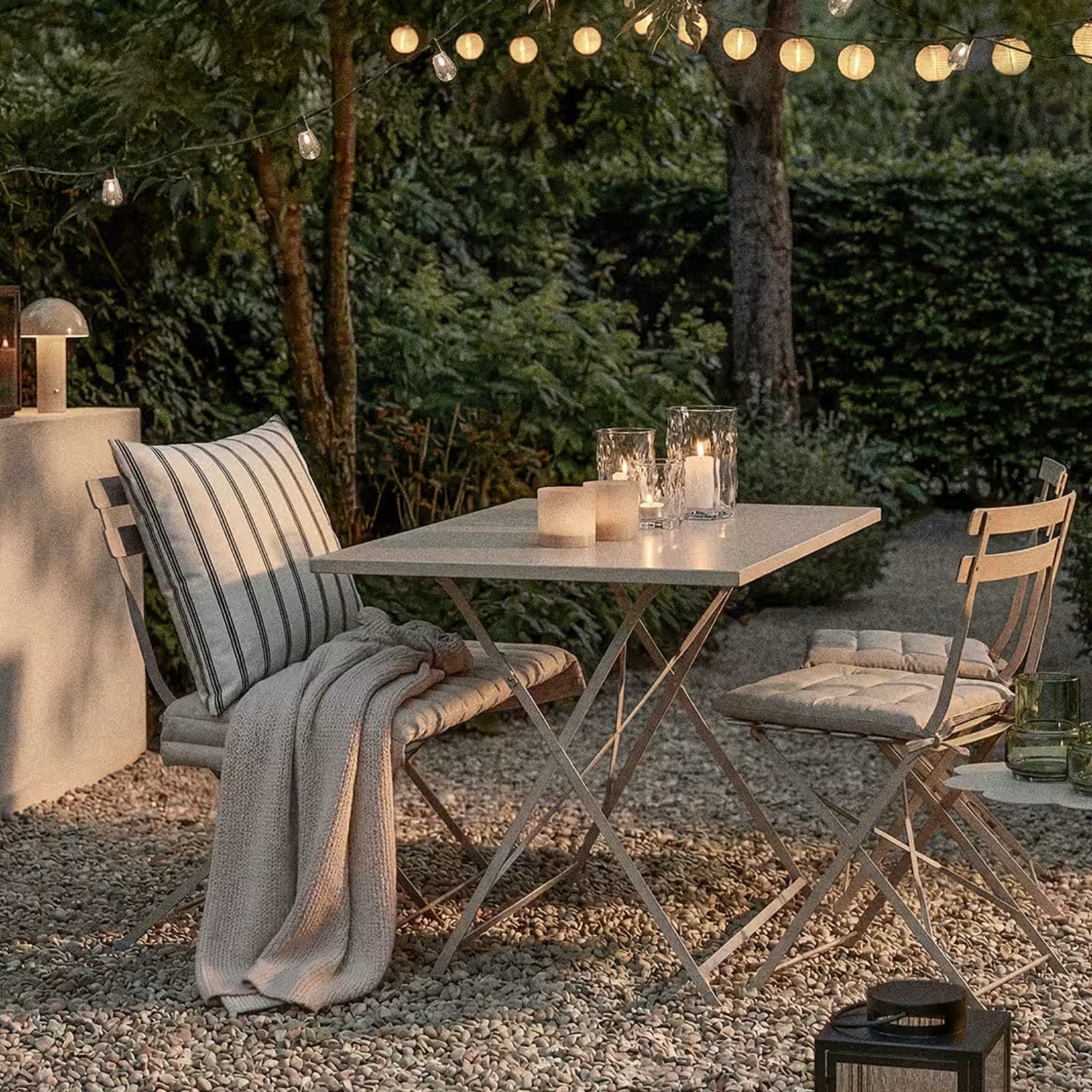 Säljs i 2-pack. Hopfällbar stol i nätt design, perfekt till balkongen eller uteplatsen.