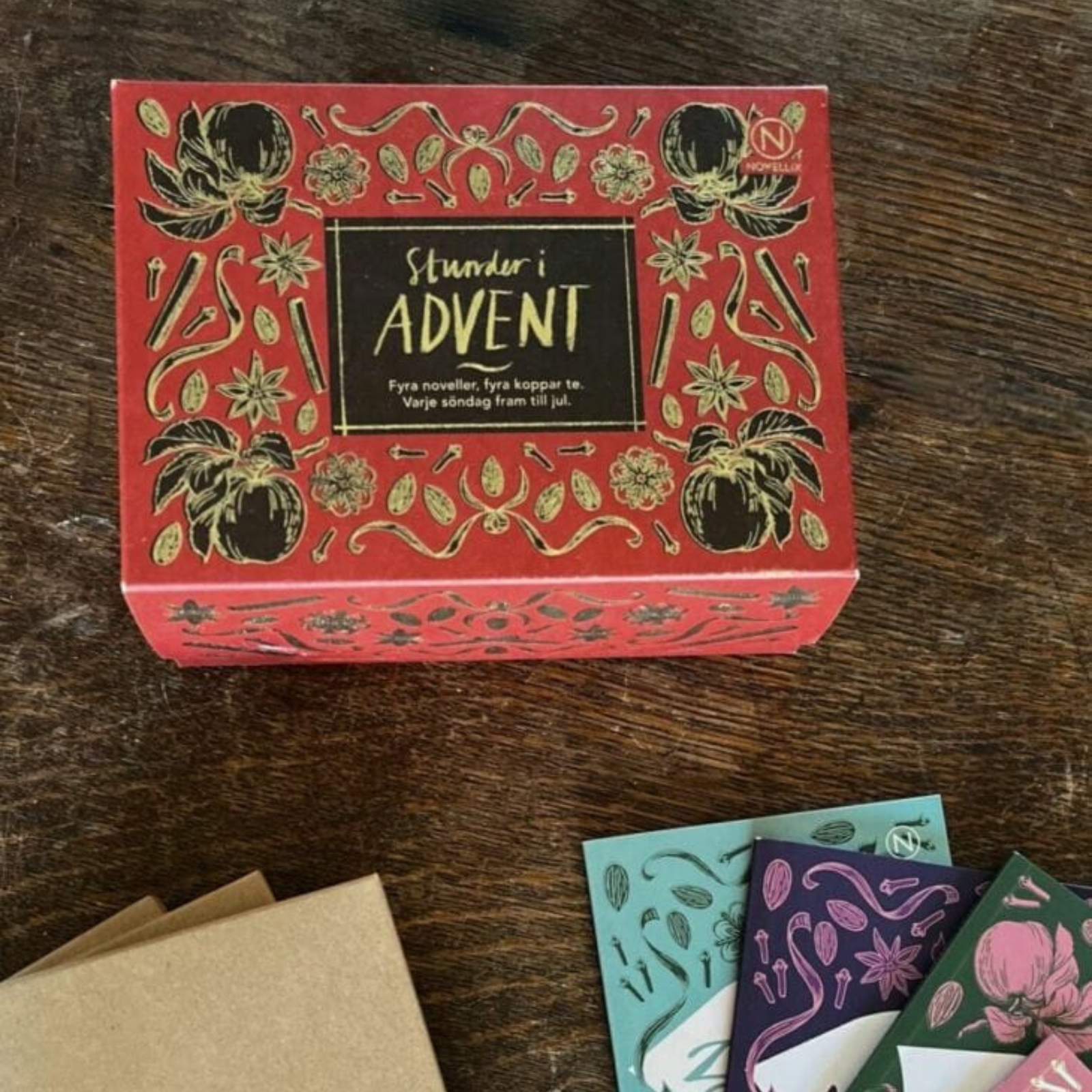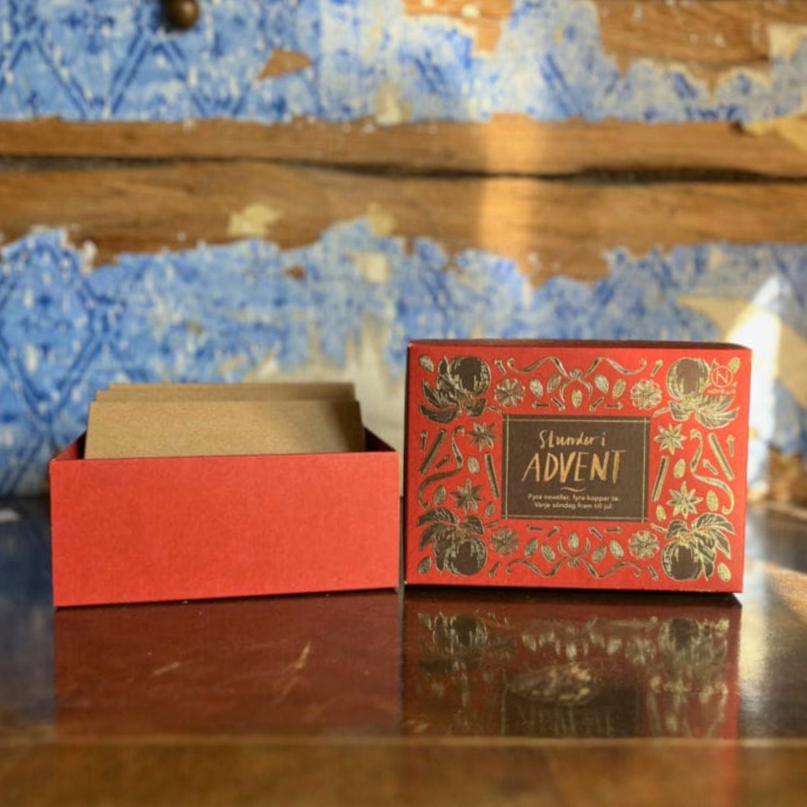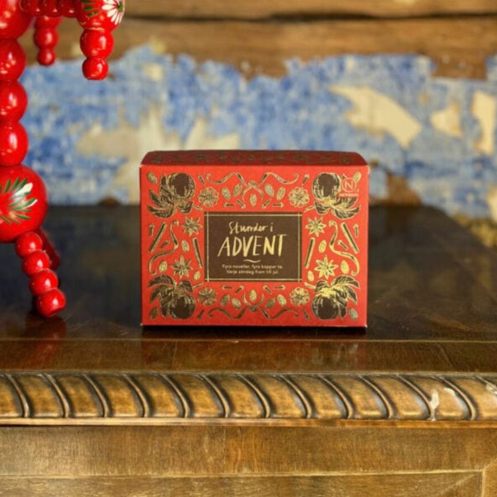 I den här kalendern finner du fyra kuvert, ett för varje söndag i advent. Förutom en novell bjuder varje lucka på en omsorgsfullt utvald tesort som bär smak av allt från frisk apelsin och kardemumma till saffran, pepparkaka och sötsyrliga äpplen.