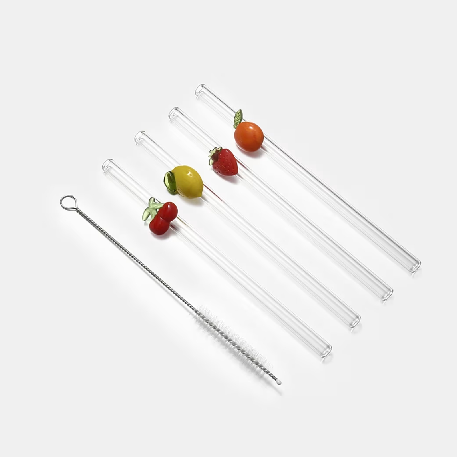 Sugrör i borosilikatglas med olika frukter, ett praktiskt sätt att hålla reda på sitt glas.