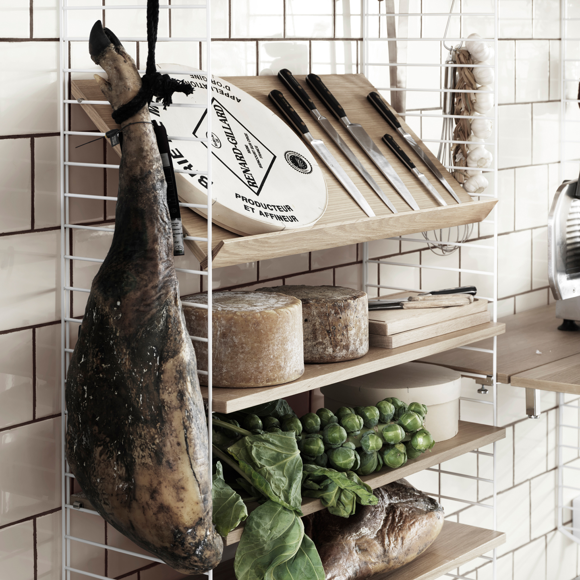 Tidsskriftshyllorna i trä finns i två bredder, 58 cm och 78 cm, och passar med 30 cm djupa trådgavlar från String® System. Tidsskrifthyllorna skapar karaktär och ger dig möjlighet att visa din favoritbok eller bryta av din bokhylla med en plats för tidningar och magasin. Välj bland olika färger och träslag som passar just din stringhylla. Det medföljer upphängningsbeslag i förpackningen