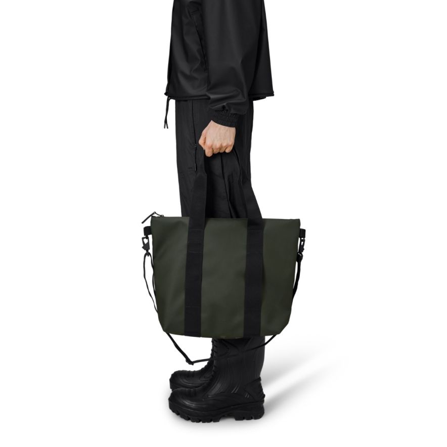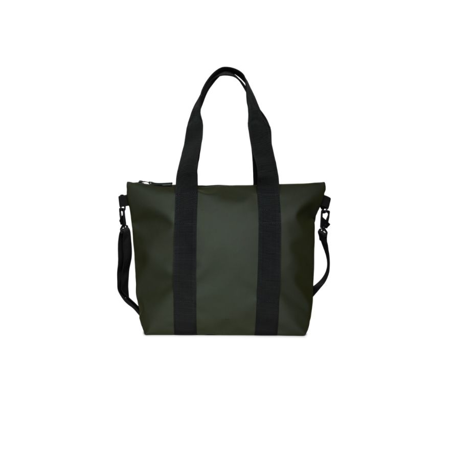 Tote Bag Mini är en vattentät väska perfekt för shopping, pendling eller på kontoret. Designen präglas av diskreta funktionella detaljer för en upphöjd utilitaristisk look. Öppna den fullängdsbelagda dragkedjan för att avslöja en rymlig huvuddelavdelning. Tote Bag erbjuder olika bäralternativ genom sin avtagbara axelrem och långa hand/axelhandtag. Bärhandtagen har fästringar för små föremål som nycklar. Tote Bag Mini är konstruerad av Rains signatur vattentäta PU-tyg, konstruerad för att bära styrka, hållbarhet, och en mjuk känsla.