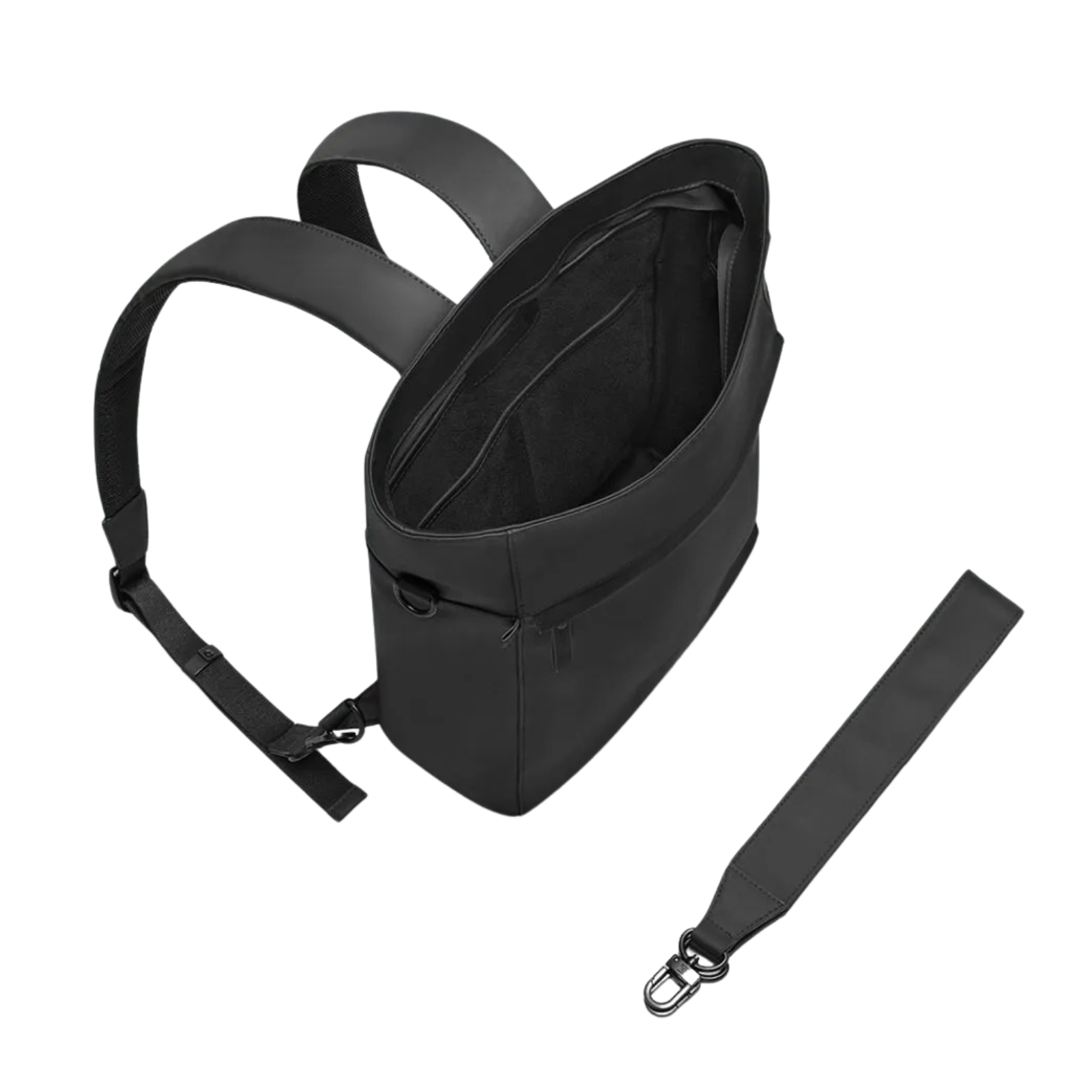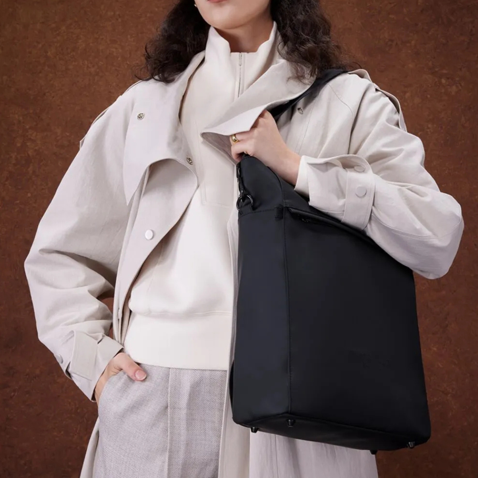 Tåte – ryggsäck och axelväska i ett, tillverkad i återvunnet material. Behöver du en ryggsäck eller en axelväska? Med Tåte får du båda. Den här smarta väskan fungerar som en mångsidig hybrid som passar lika bra till cykelpendlingen som till en kväll på stan.