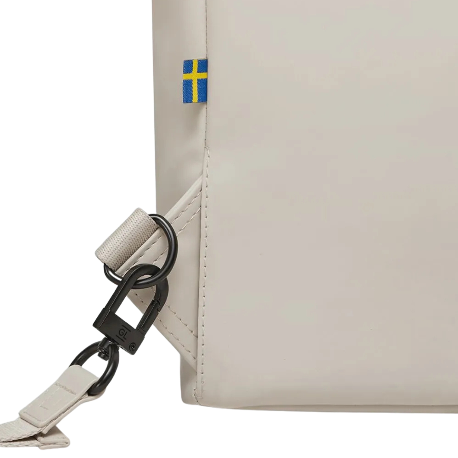 Tillverkad i slitstarkt och vattentätt material med foder av återvunnen polyester är Tåte både hållbar och lätt att hålla ren. Den har ett vadderat fack för laptop upp till 13 tum, en dragkedjeficka framtill för mobil, nycklar eller andra saker du vill ha nära till hands samt en avtagbar axelrem i fast längd. Väskan är fri från PFC och DMFa-lösningsmedel och är designad med fokus på funktion, stil och medvetna materialval.