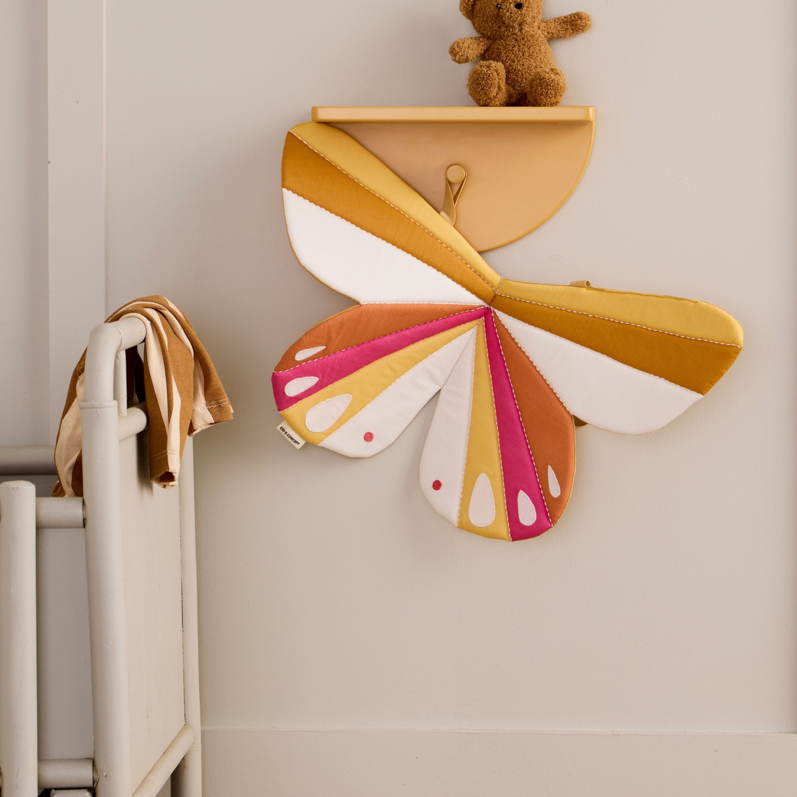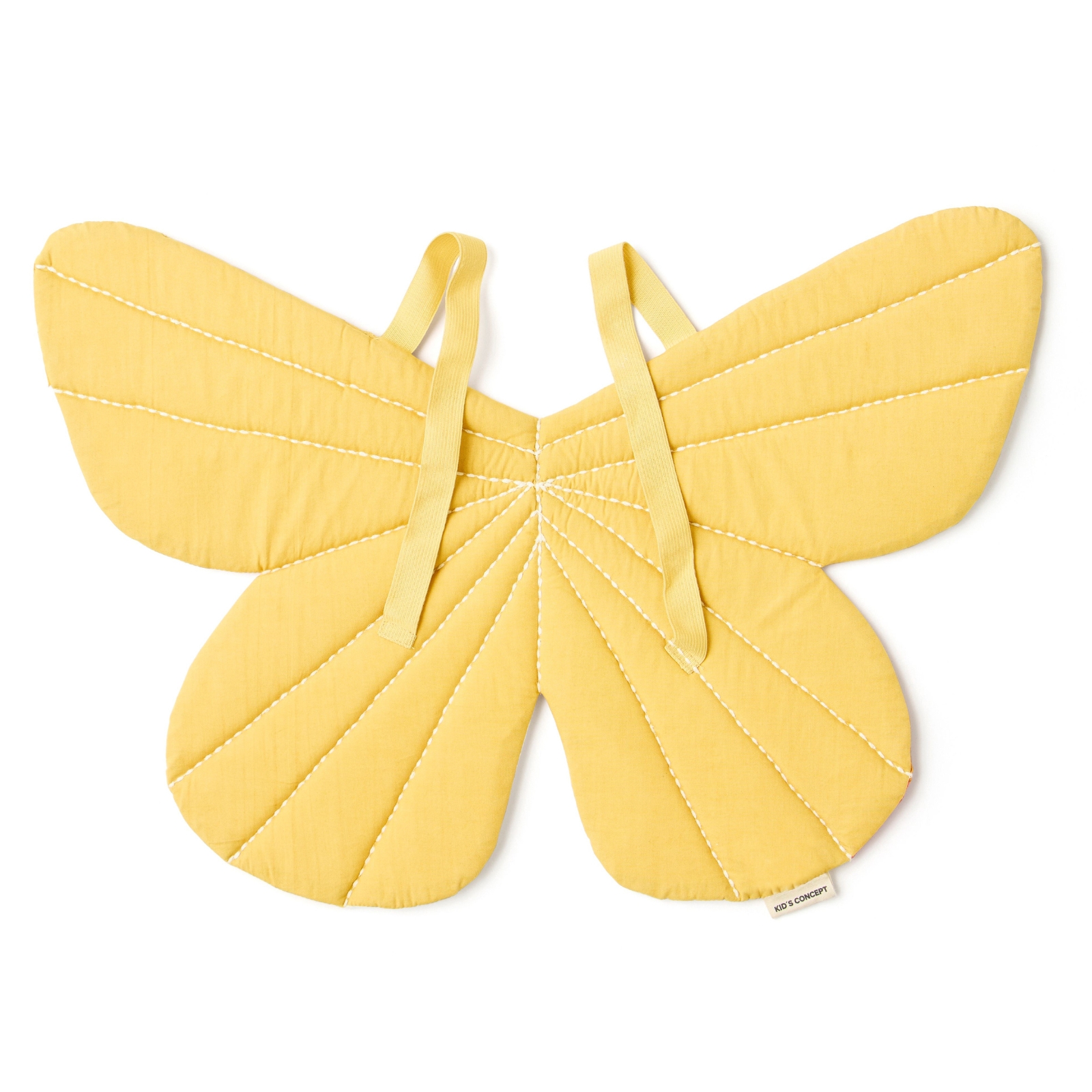 "Fjärlien svävar på mjuka vindar, dess ömtåliga vingar målar luften med en lätt rörelse." De här vingarna är designade för att bäras på ryggen med elastiska axelband, vilket gör dem både enkla och bekväma att ta på. Vingarna är vadderade för att behålla sin form under leken, och de broderade detaljerna ger både stadga och textur. Utklädningslek hjälper barn att utforska sin kreativitet och utveckla sina berättarförmågor, och vingar som dessa uppmuntrar till aktiv rörelse när de låtsas "flyga". Den enkla designen gör det lätt för barnen att ta på sig själva, vilket stödjer självständig lek.