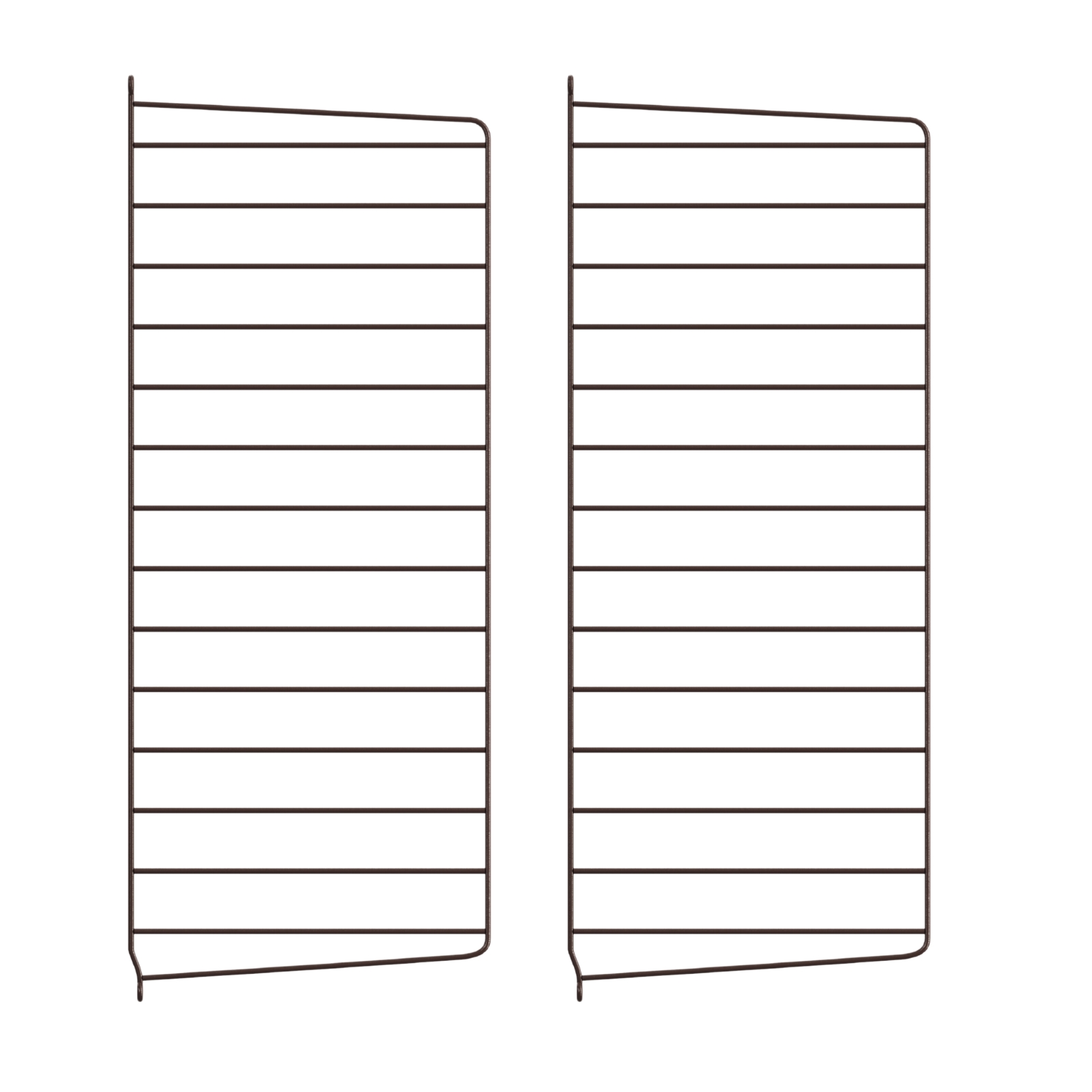 Väggavlarna finns i två höjder, 50 cm och 75 cm, samt två djup, 20 cm och 30 cm. Gavlarna är basen för att bygga din stringhylla. Därefter kan du addera produkter från String System. Välj mellan en rad olika produkter så som hyllplan och skåp. Väggaveln skruvas fast på väggen och rör varken golv eller tak vilket gör den flexibel och lätt att anpassa efter utrymmet. För att göra din hylla ännu mer funktionell och unik kan du även komplettera med organizers och s-krokar som hängs på gaveln. Väggavlarna säljs i både 1-pack och 2-pack.