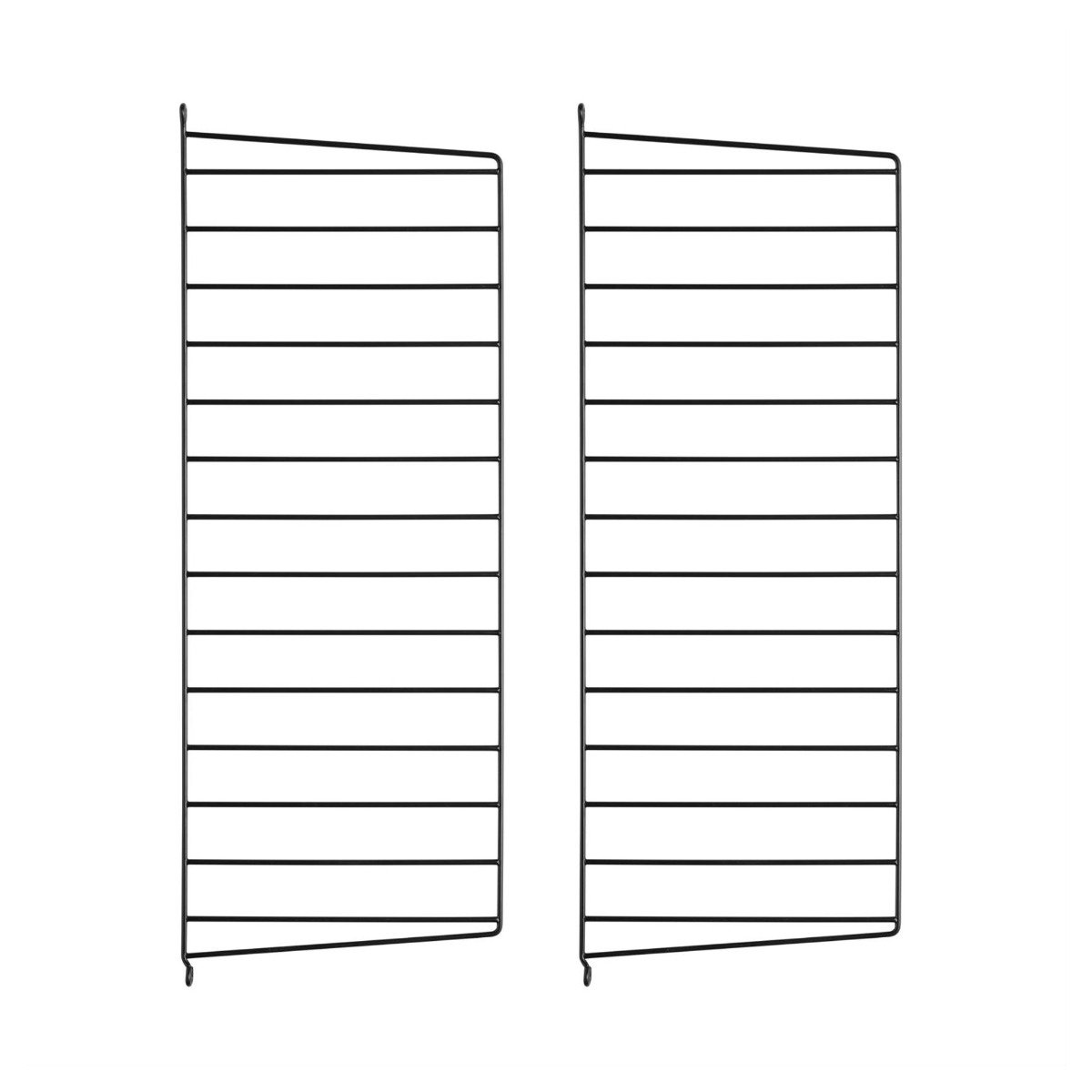 Väggavlarna finns i två höjder, 50 cm och 75 cm, samt två djup, 20 cm och 30 cm. Gavlarna är basen för att bygga din stringhylla. Därefter kan du addera produkter från String System. Välj mellan en rad olika produkter så som hyllplan och skåp. Väggaveln skruvas fast på väggen och rör varken golv eller tak vilket gör den flexibel och lätt att anpassa efter utrymmet. För att göra din hylla ännu mer funktionell och unik kan du även komplettera med organizers och s-krokar som hängs på gaveln. Väggavlarna säljs i både 1-pack och 2-pack.