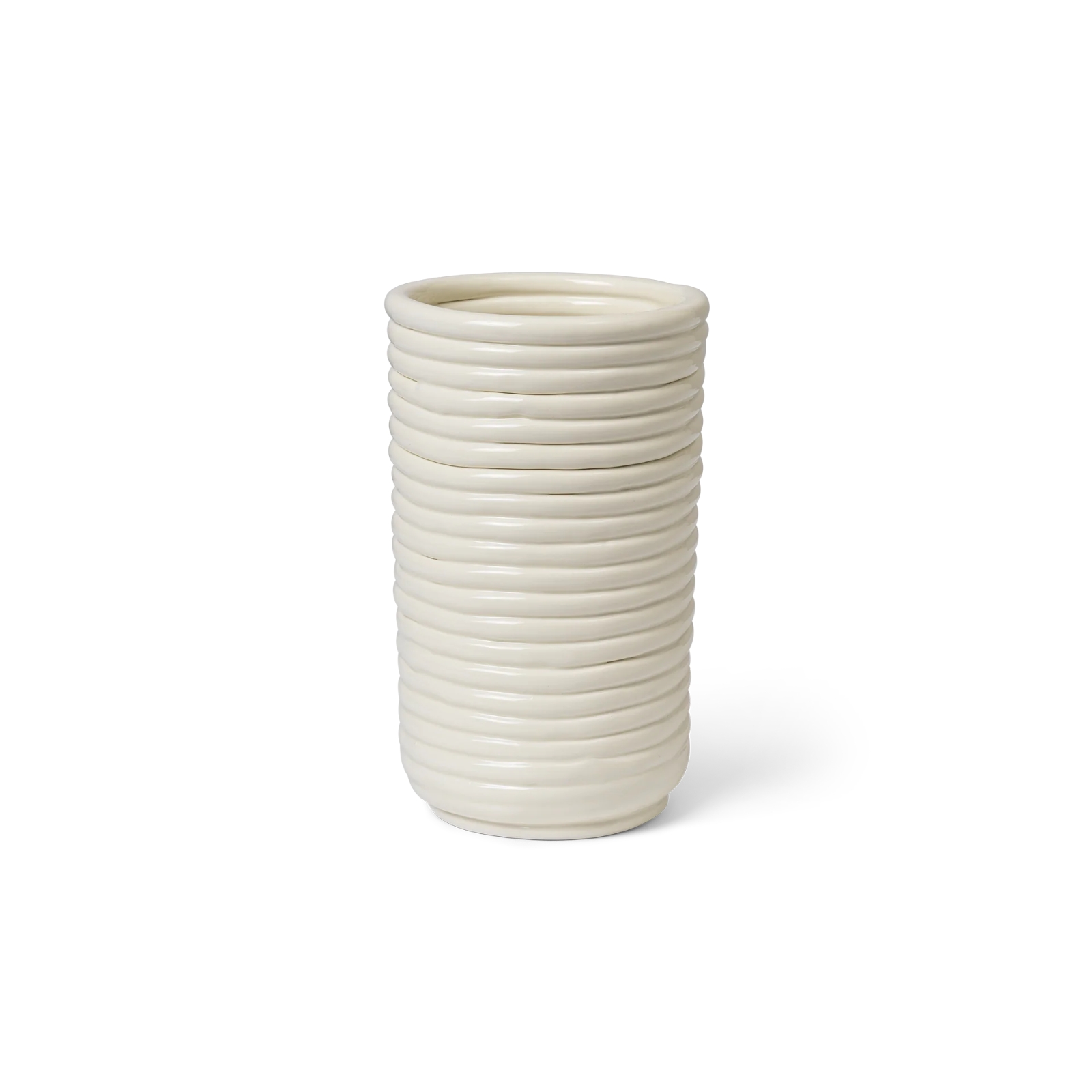 Corduroy-vasen är noggrant skapad av glaserad keramik och ger ditt vardagsrum en genuin känsla av hantverk. Vasen är formad för hand genom att en lång sträng av lera varsamt rullas till en cylinder.
