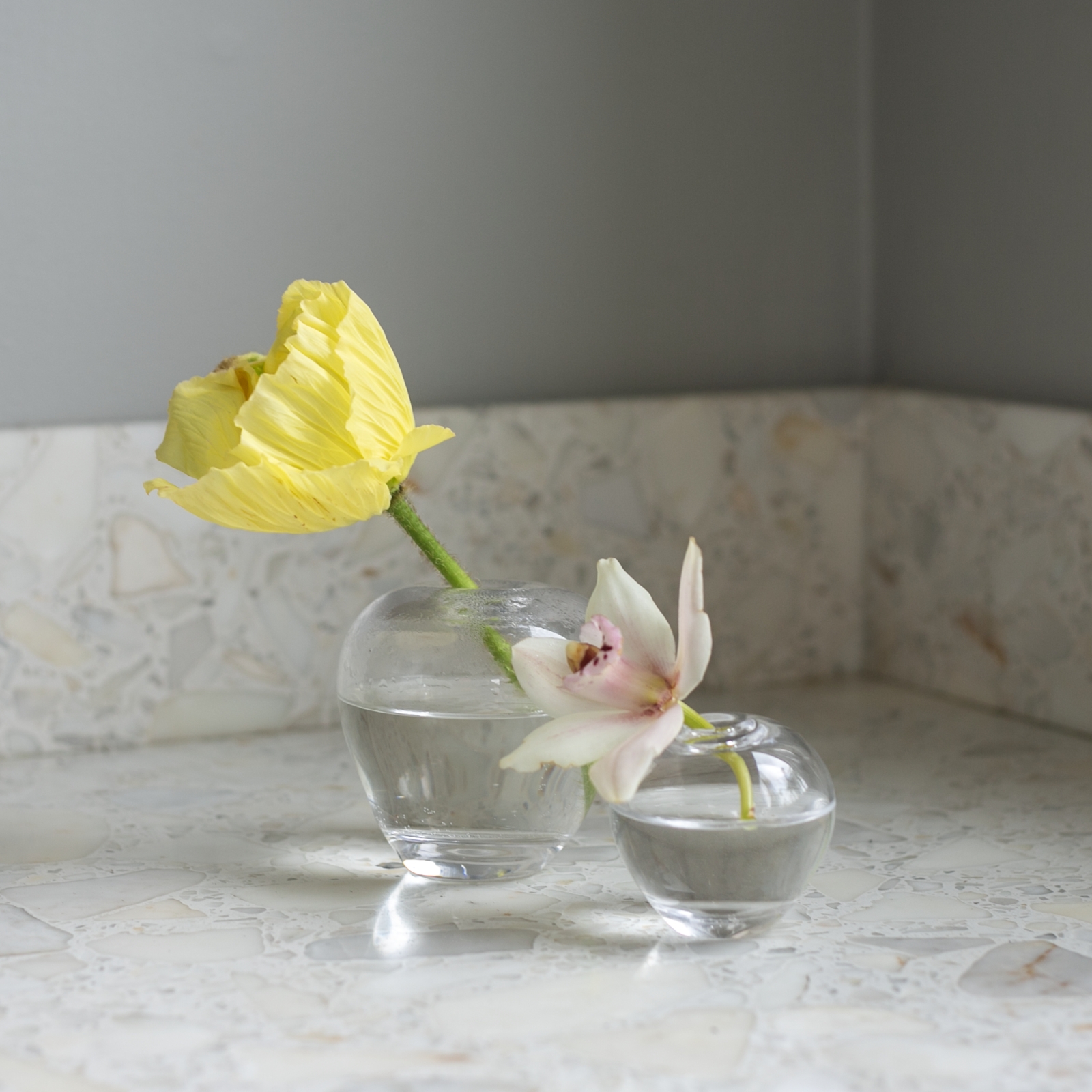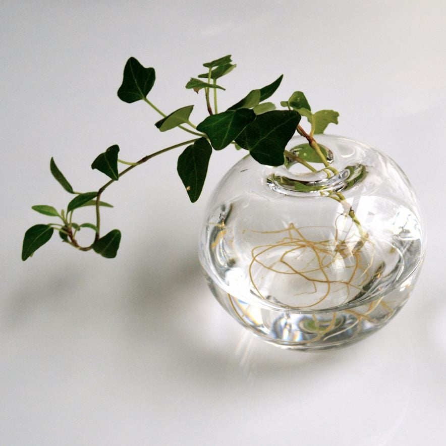 Elegant handblåst vas för sticklingar och snittblommor. Finns i fler storlekar och olika formar. Alla vaser är handblåsta, slipade och signerade av Evelina Dovsten och kan därför variera något i sitt utförande.