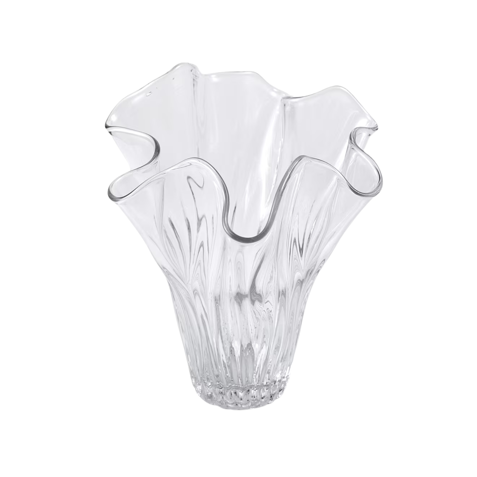 Tulpanvas i glas med vid veckad öppning.