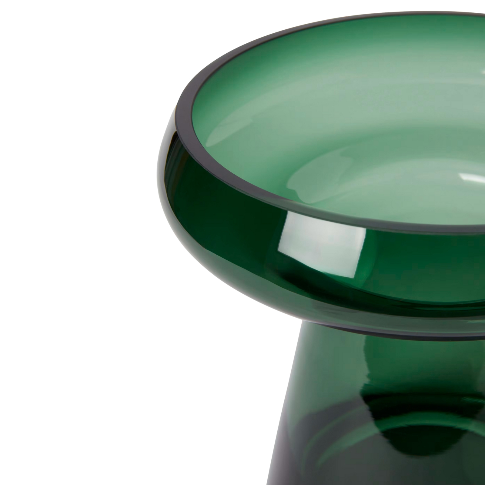 Hög glasvas med en bred bas och vid rundad öppning.