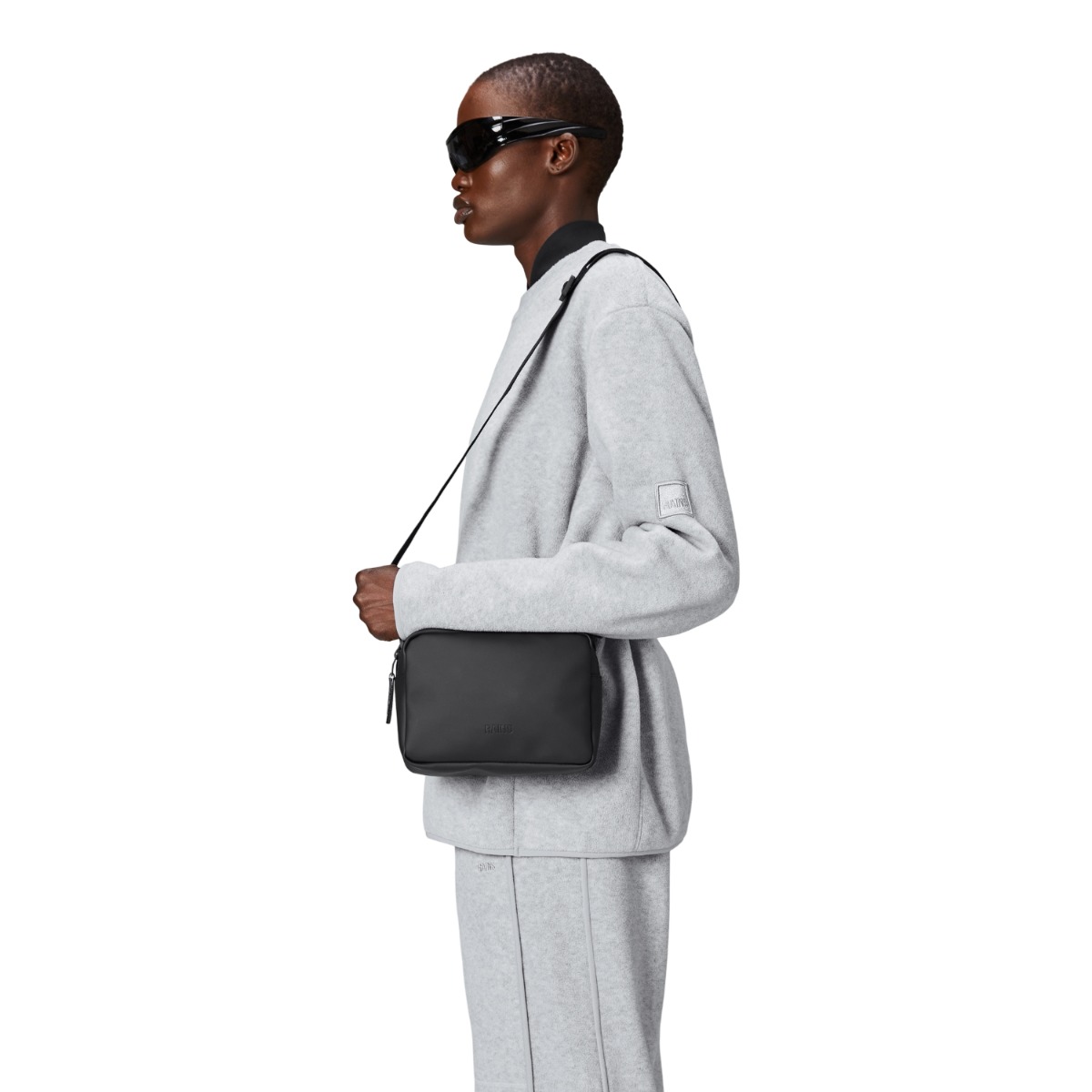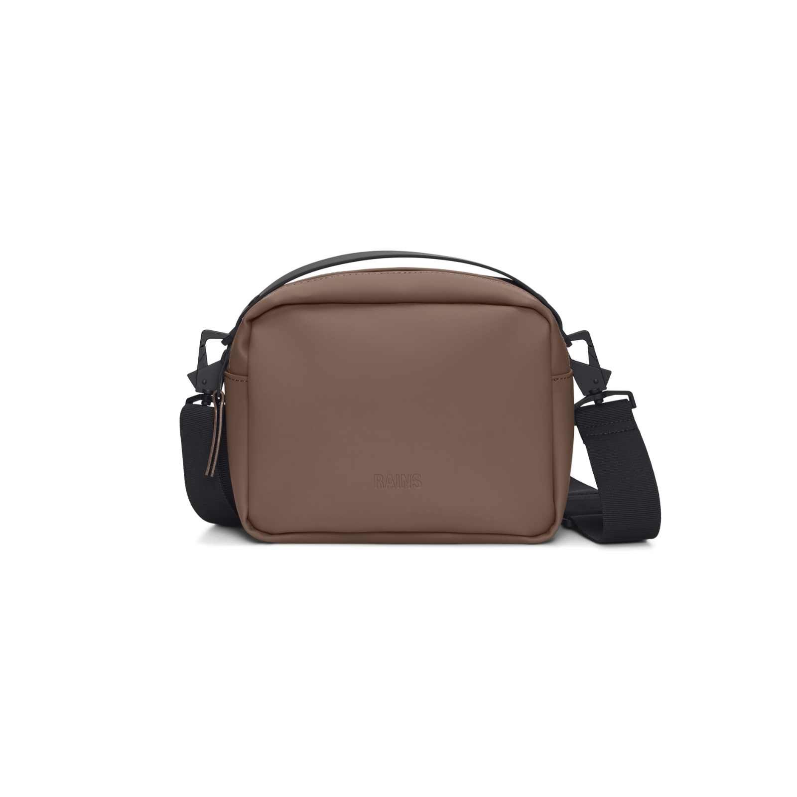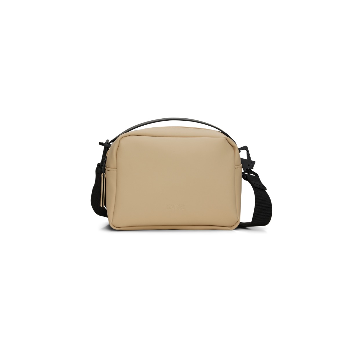 Box Bag är en ren men ändå funktionell vattentät väska, designad för att bäras över axeln, över kroppen eller som en handväska. Dess minimala boxiga siluett kan enkelt stylas och är en idealisk storlek för att bära ett extra lager och dagliga nödvändigheter. Designen är avslutad med en justerbar bandrem, fäst med karbinhakar. Box Bag är skuren i Rains signatur vattentäta PU-tyg, konstruerad för att bära styrka, hållbarhet och en smidig känsla.